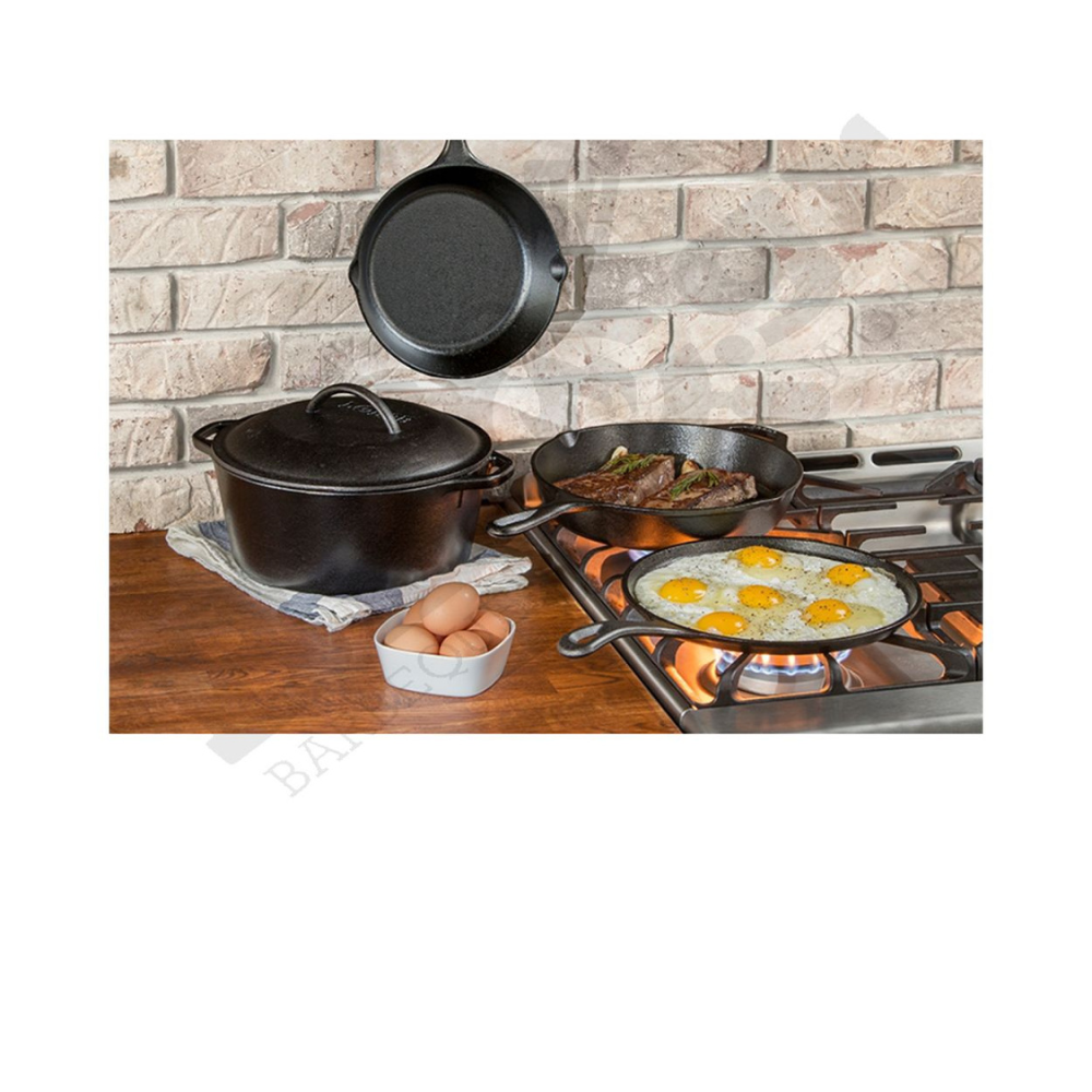 The Lodge 5-piece cast iron cookware SET combines all the essential cast iron cookware for a complete kitchen in your home. This SET is also a great gift choice that will accompany your loved ones for years. With 100% natural coating (Seasoned), with vegetable oil.
