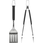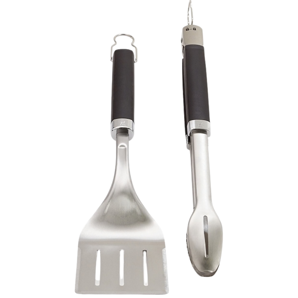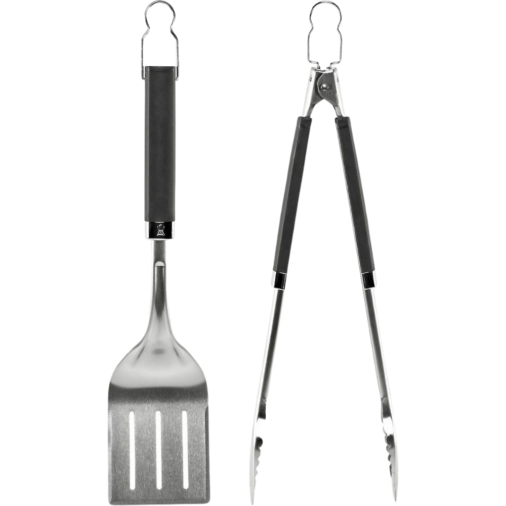 Αυτό το σετ εργαλείων της Weber® αποτελείται, από τα πιο εύχρηστα εργαλεία κατά το ψήσιμο, μια τσιμπίδα και μια σπάτουλα, κατασκευασμένα από ανοξείδωτο ατσάλι, με μαλακές, αντιολισθητικές λαβές & μεταλλικό κρίκο για να τα κρεμάτε. Χρησιμοποιώντας την σπάτουλα μπορείτε να γυρίσετε τα μπιφτέκια και τα λαχανικά σας, ενώ με την τσιμπίδα τα κρεατικά σας. Η τσιμπίδα διαθέτει επίπεδο άκρο για μεγαλύτερη ακρίβεια κινήσεων ενώ η σπάτουλα έχει ειδικό σχεδιασμό, ώστε να “γλιστράει” κάτω ακόμη και από τα πιο ευαίσθητα φαγητά. Πλένονται στο πλυντήριο