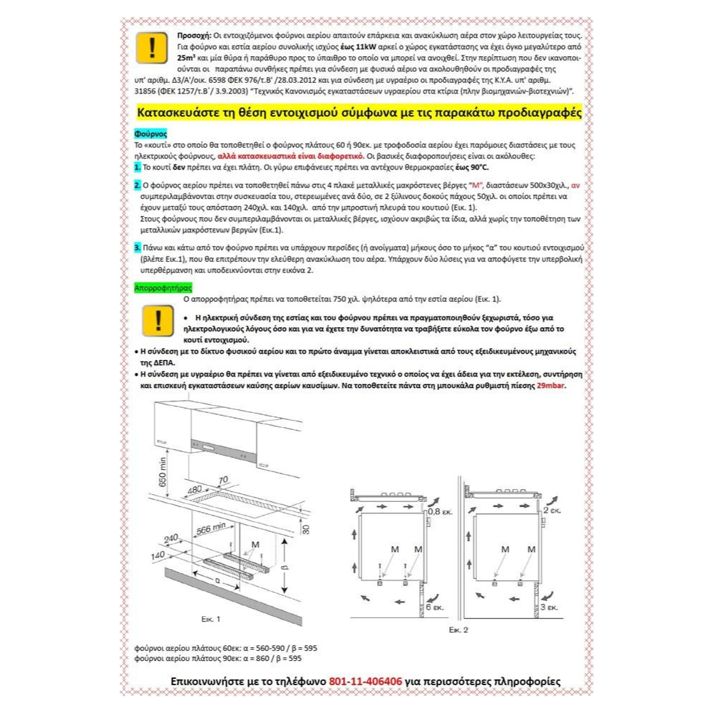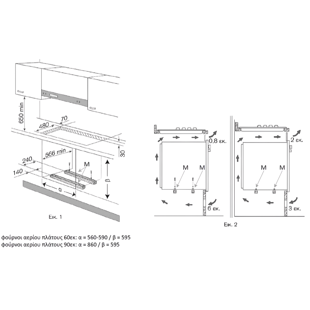 Διαστάσεις εντοιχισμού (ΠxYxB) 85,4-86,4 x 58,5-58,8 x min 56,0 εκ.