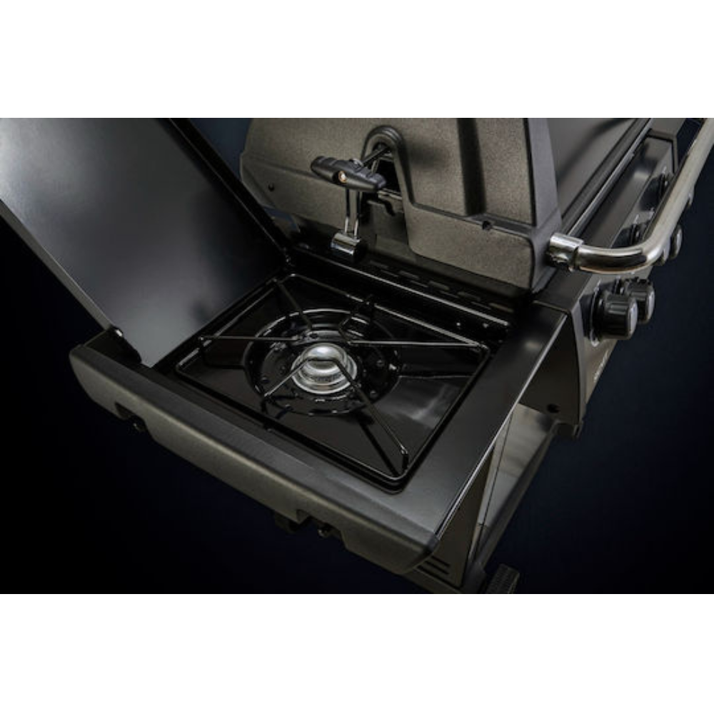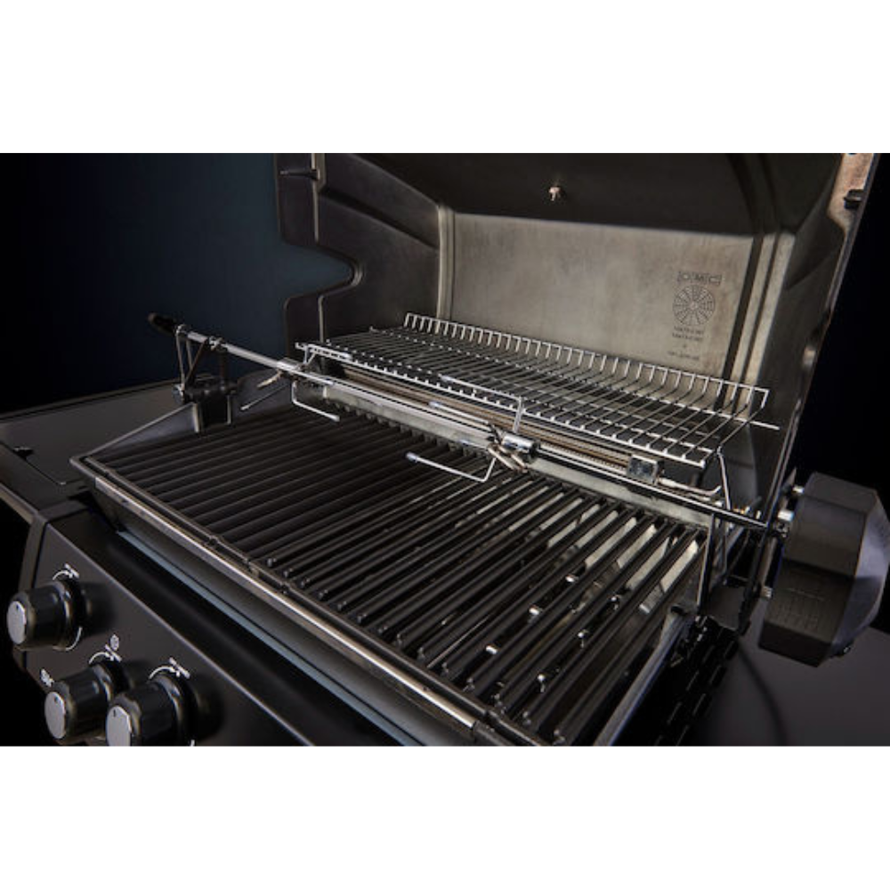 Οι ψησταριές Signet της Broil King® ανήκουν σε μια από τις πιο δημοφιλείς σειρές ψησταριών στον κόσμο, που τις επιλέγουν οι φανατικοί του μπάρμπεκιου. Η Signet 390 Shadow, θα σας μαγέψει με τόσο με τα δυνατά τεχνικά χαρακτηριστικά της όσο και με το εντυπωσιακό μαύρο της χρώμα! Μπορεί να χρησιμοποιηθεί σαν μπάρμπεκιου (για ψήσιμο πάνω στην σχάρα), σαν οβελιστήριο (για να ψήσετε στην σούβλα κοκορέτσι, κοντοσούβλι κτλ) και σαν φούρνος (για μαγείρεμα φαγητών σε γάστρα). Διαθέτει τρεις ισχυρούς ανοξείδωτους καυστήρες (διπλής σωλήνωση), έναν πλευρικό καυστήρα για μαγείρεμα, έναν οπίσθιο καυστήρα με σετ σούβλας με μοτέρ, μαντεμένιες σχάρες ψησίματος 2 όψεων (τριγωνικές – με αυλάκι για λιπαρά φαγητά), ράφι συντήρησης για τα ψημένα φαγητά, αντιφλογιστικές σχάρες, σύστημα εύκολου καθαρισμού με λιποσυλλέκτη, αποθηκευτικό χώρο για την φιάλη, θερμόμετρο στο καπάκι και τέσσερις ρόδες για εύκολη μετακίνηση. Χάρη στο μοναδικό της design θα αναβαθμίσει το μπαλκόνι ή τον κήπο, ενώ παράλληλα θα σας επιτρέψει να ψήσετε για μεγάλες παρέες!