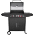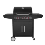 Η ψησταριά υγραερίου Thermogatz GS Grill Lux προσφέρει υψηλή απόδοση και λειτουργικότητα για απολαυστικές στιγμές ψησίματος στον εξωτερικό σας χώρο. Εξοπλισμένη με τρεις εστίες, αυτή η ψησταριά επιτρέπει την παραλληλόλειτουργία πολλαπλών φαγητών με διαφορετικές θερμοκρασίες, ενώ η μεγάλη μαντεμένια σχάρα παρέχει επαρκή επιφάνεια για το ψήσιμο των αγαπημένων σας εδεσμάτων.