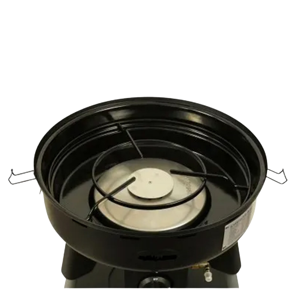 Εσωτερικό περίβλημα λειτουργεί ως δοχείο νερού που βοηθά στη διατήρηση μιας υγρής ατμόσφαιρας στη σχάρα και διατηρεί το ψητό φαγητό πιο ζουμερό